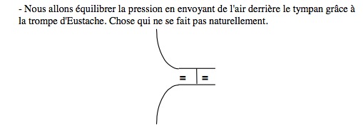 C'est l'oreille moyenne qui va poser des problèmes en plongée car c'est un espace fermé rempli d'air. Elle est reliée aux voies aériennes supérieures par la trompe d'Eustache, qui est fermée pratiquement tout le temps. Elle s'ouvre une demi seconde toutes les trois minutes pour équilibrer automatiquement la pression dans l'oreille moyenne.